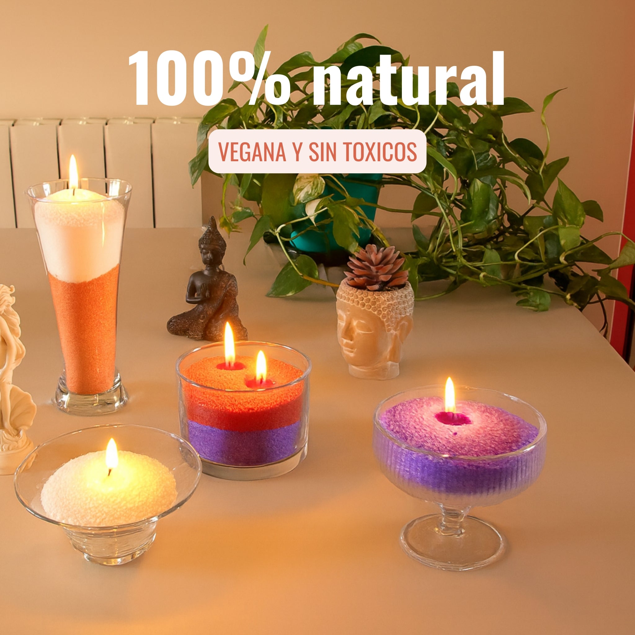 La revolución de las velas empieza aquí: cera de arena vegana, sin residuos, 100% natural, sin parafina, y dura casi el doble que una vela normal