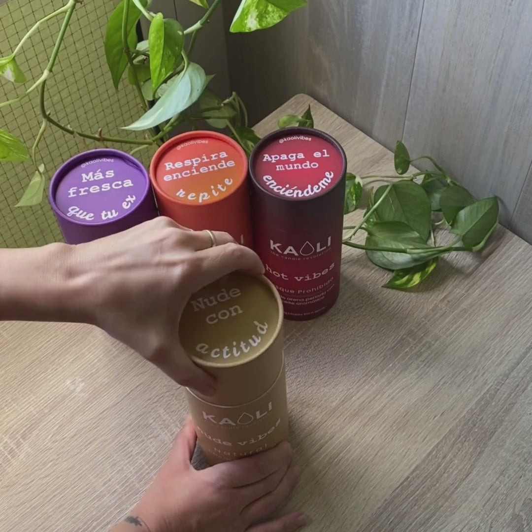 Kaoli es cera en forma de microperlas de soja vegetal, lista para usar sin moldes ni complicaciones. Solo necesitas un tarro (sí, ese que ibas a tirar), una mecha y Kaoli. Añades la cera, colocas la mecha… y a disfrutar.
