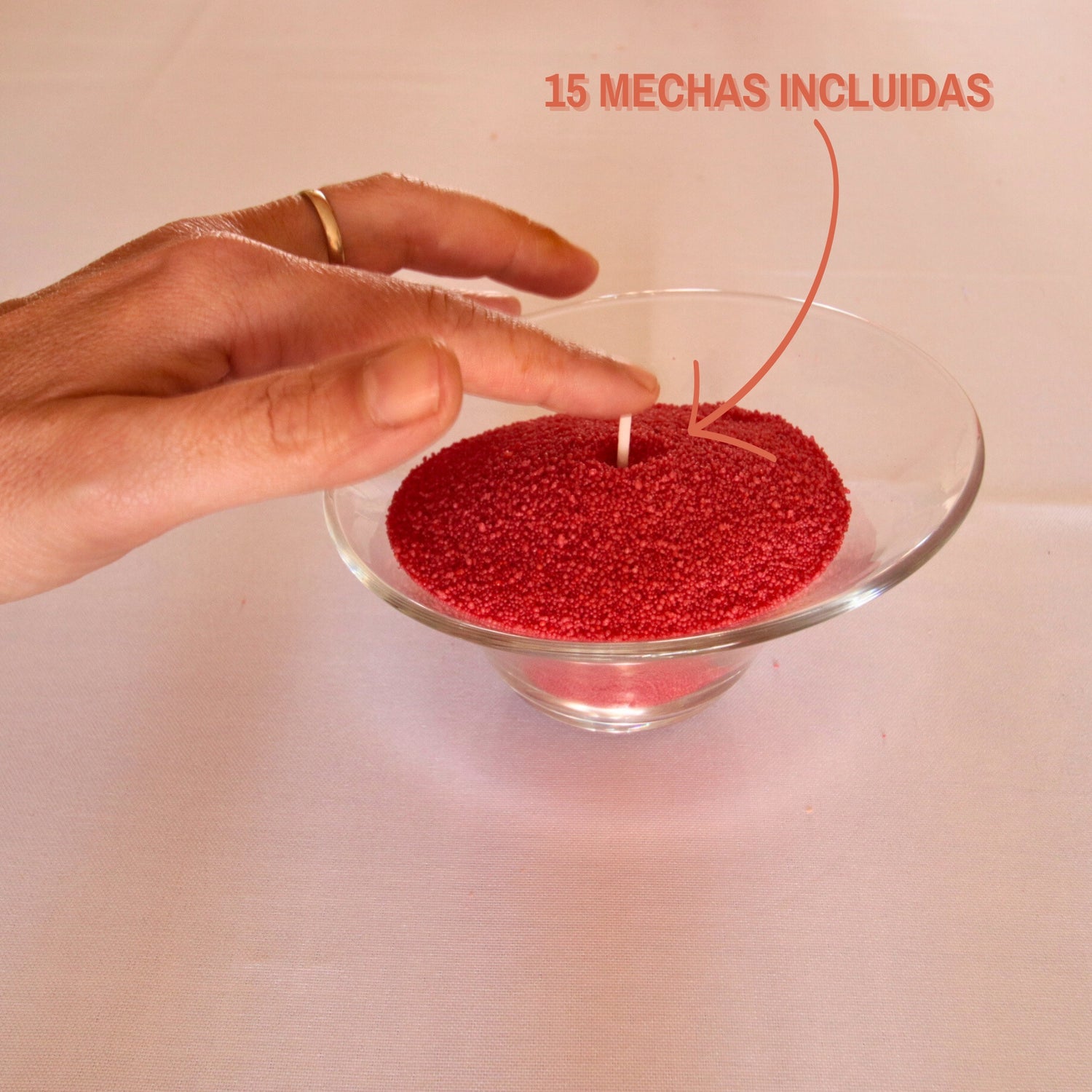 Incluye 500gr de cera de arena vegana premium, 100%natural y 15 mechas largas encerada, que puedes cortar según la necesidad, todo en nuestro caracteristico tubo colorado.