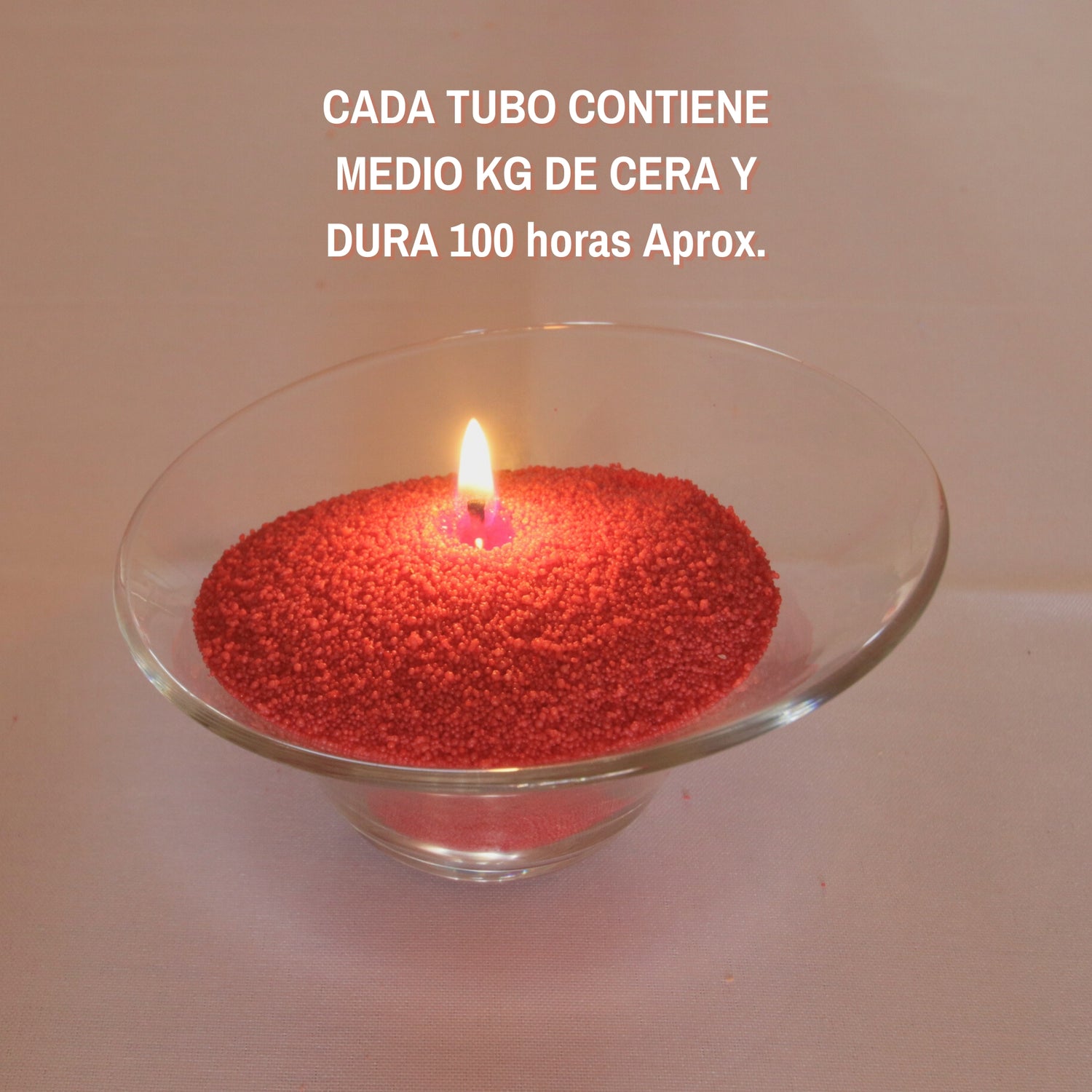 Y disfrutar de 100 horas aprox. de combustión por cada tubo Kaoli que contiene 500gr. de cera de arena.
